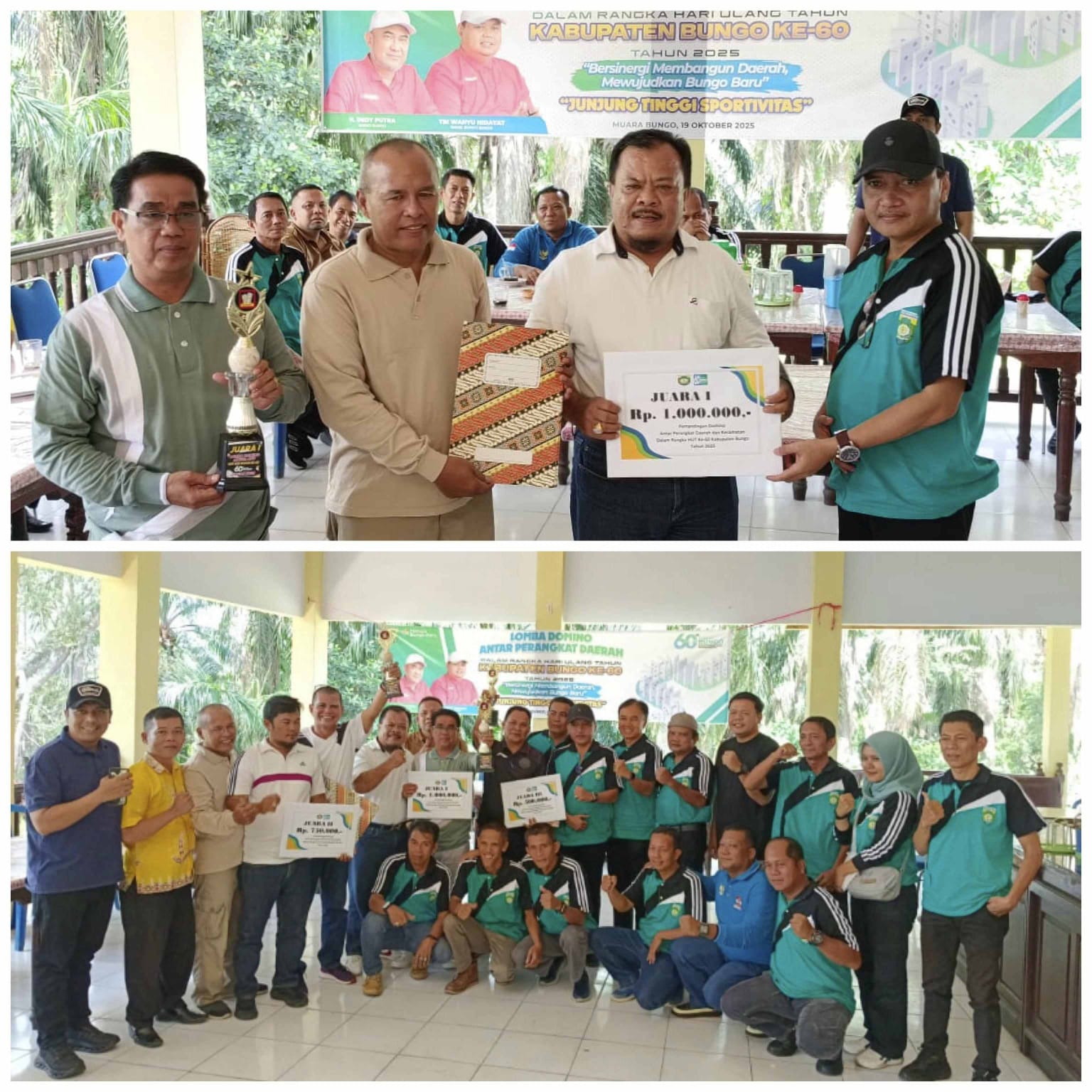 Lomba ini mengusung tema “Bersinergi Membangun Daerah, Mewujudkan Bungo Baru, Junjung Tinggi Sportivitas”, yang mencerminkan semangat kebersamaan dan sinergi antar perangkat daerah dalam membangun Kabupaten Bungo yang lebih baik.Setelah melalui persaingan sengit dan pertandingan yang berlangsung sportif, keluar sebagai juara dalam lomba domino ini:
