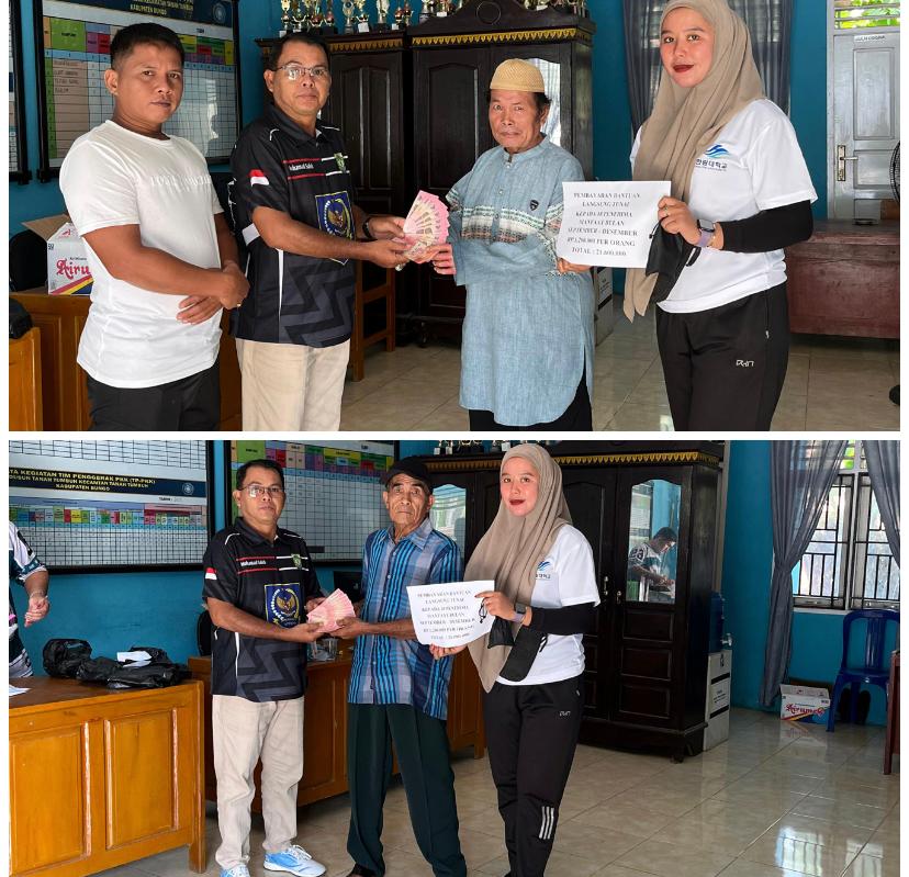Penyaluran dipimpin langsung oleh Rio Dusun Tanah Tumbuh Muhammad Saleh beserta perangkat desa dan penerima manfaat.