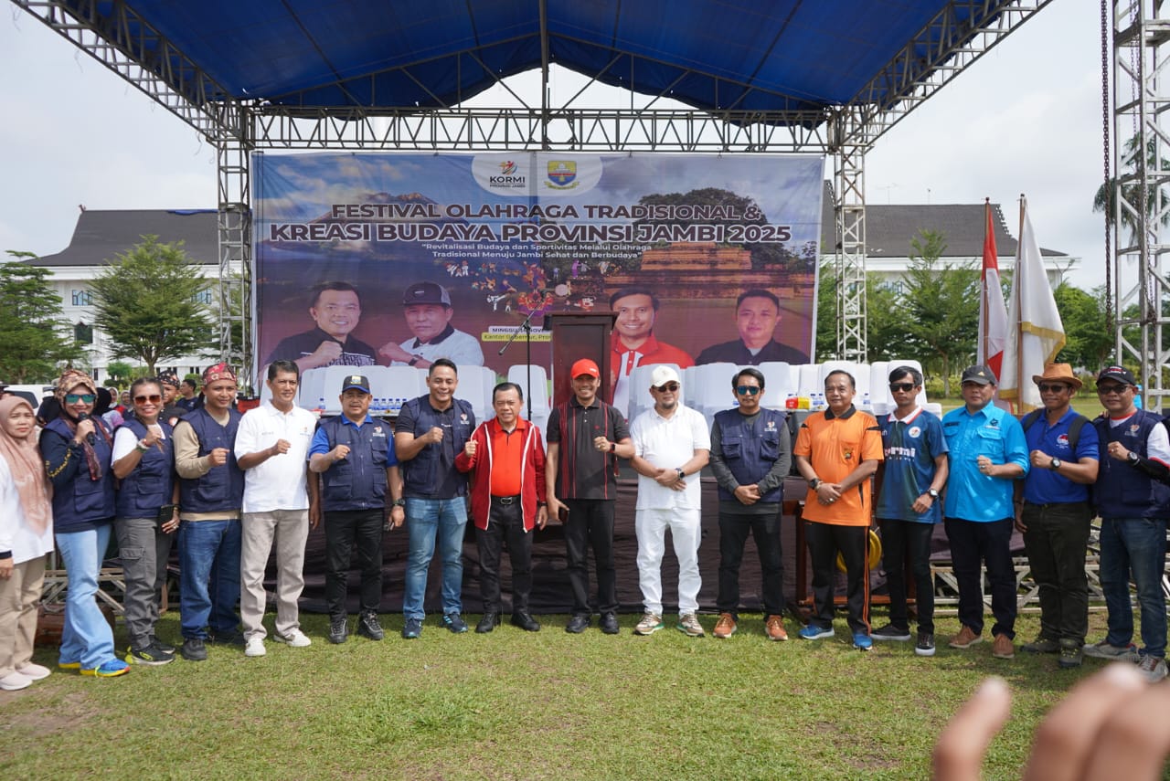 Tjnews,Jambi (Diskominfo Provinsi Jambi) – Gubernur Jambi Dr. H. Al Haris, S.Sos, MH mengemukakan, KORMI mengedukasi masyarakat tentang manfaat olahraga untuk kesehatan, memotivasi mereka untuk aktif secara fisik. Tubuh yang lebih sehat secara langsung berkorelasi dengan peningkatan rasa bahagia dan kesejahteraan, selain itu prestasi yang diraih. Hal tersebut disampaikannya saat Pembukaan Festival Olahraga Masyarakat Tradisional dan Kreasi Budaya Komite Olahraga Masyarakat Indonesia (KORMI) Provinsi Jambi Tahun 2025, bertempat di Lapangan Kantor Gubernur Jambi, Minggu (16/11/2025) pagi.