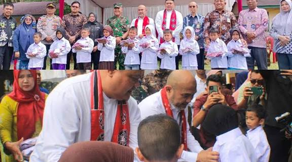Tjnews,Bungo-Satu per satu program prioritas Bupati Bungo H. Dedy Putra mulai terealisasi. Salah satunya adalah program bantuan seragam gratis bagi murid baru kelas 1 SD dan kelas 7 SMP di seluruh Kabupaten Bungo.Program ini secara resmi diluncurkan langsung oleh Bupati Bungo H. Dedy Putra di SD Negeri 45 Dusun Teluk Panjang, Kecamatan Bathin III, disaksikan oleh para guru, siswa, orang tua, serta pejabat di lingkungan Pemerintah Kabupaten Bungo, Jum’at (24/10/2025).