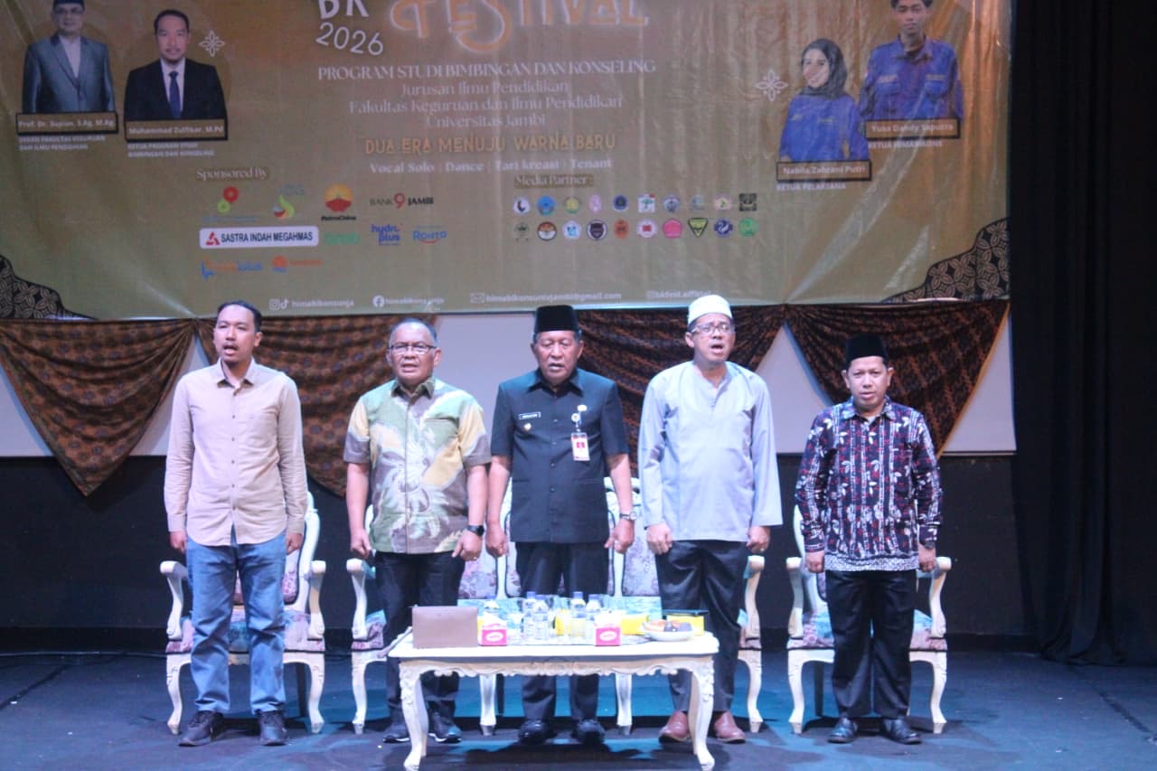 Tjnews,Kota Jambi (Diskominfo Provinsi Jambi) – Wakil Gubernur Jambi Drs. H. Abdullah Sani, M.Pd.I membuka BK (Bimbingan Konseling) Festival Program Studi Bimbingan dan Konseling Jurusan Ilmu Pendidikan, Fakultas Keguruan dan Ilmu Pendidikan Universitas Jambi, dengan tema “Metamorf: Dua Era Menuju Warna Baru”, bertempat di Gedung Teater Taman Budaya Jambi, Kota Jambi, Jum’at (13/2/2026). Hadir pada kesempatan ini Rektor Universitas Jambi, Ketua Program Studi Bimbingan dan Konseling FKIP Universitas Jambi, Pembina Himpunan Mahasiswa Bimbingan dan Konseling (HIMABIKONS) Fakultas Keguruan dan Ilmu Pendidikan (FKIP) Universitas Jambi, Ketua Himpunan Mahasiswa Bimbingan dan Konseling (HIMABIKONS) Fakultas Keguruan dan Ilmu Pendidikan (FKIP) Universitas Jambi serta undangan lainnya.