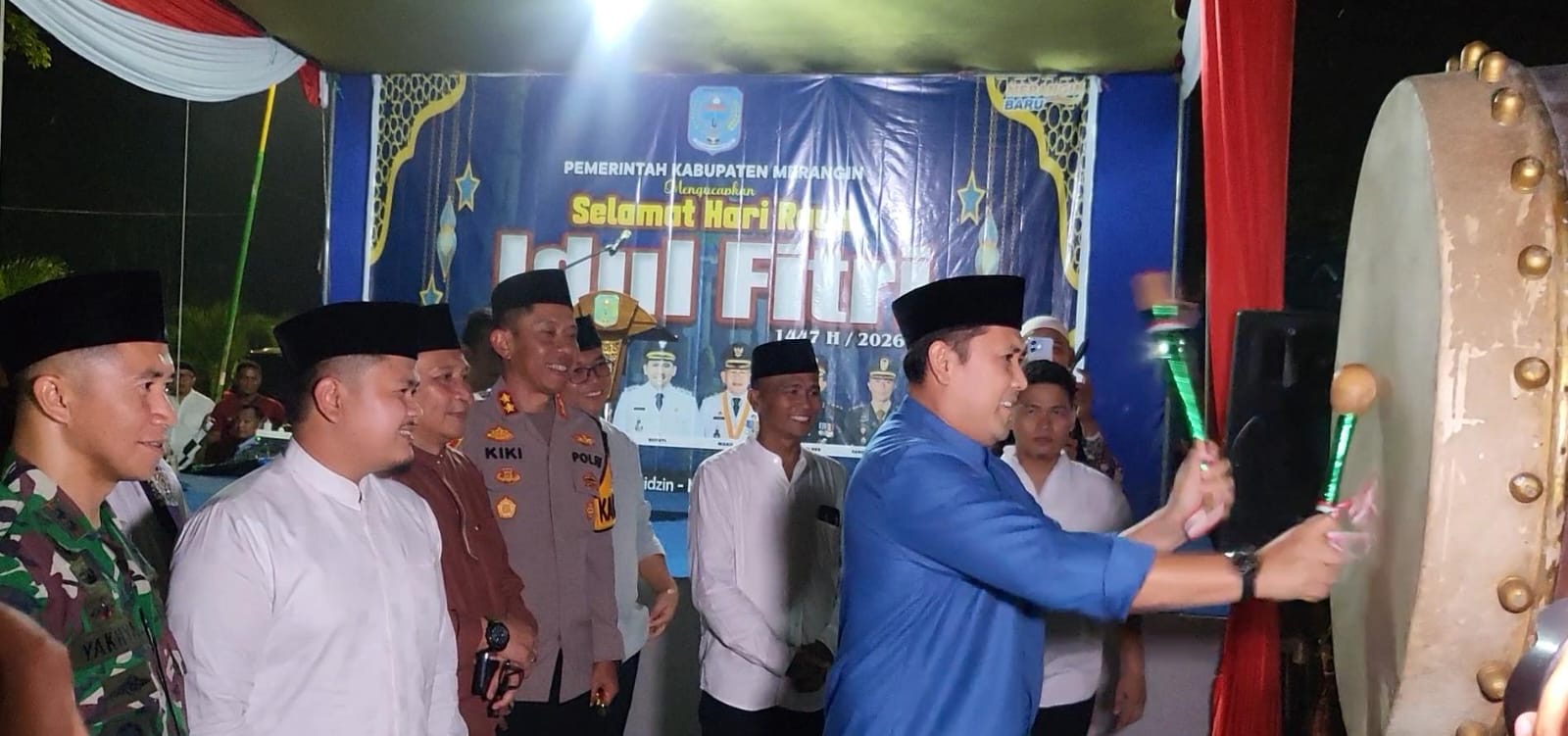 Prosesi ini ditandai dengan pemukulan bedug dan pelepasan rombongan pawai takbir keliling menyambut Hari Raya Idul Fitri 1447 Hijriah, Jumat malam (20/03).